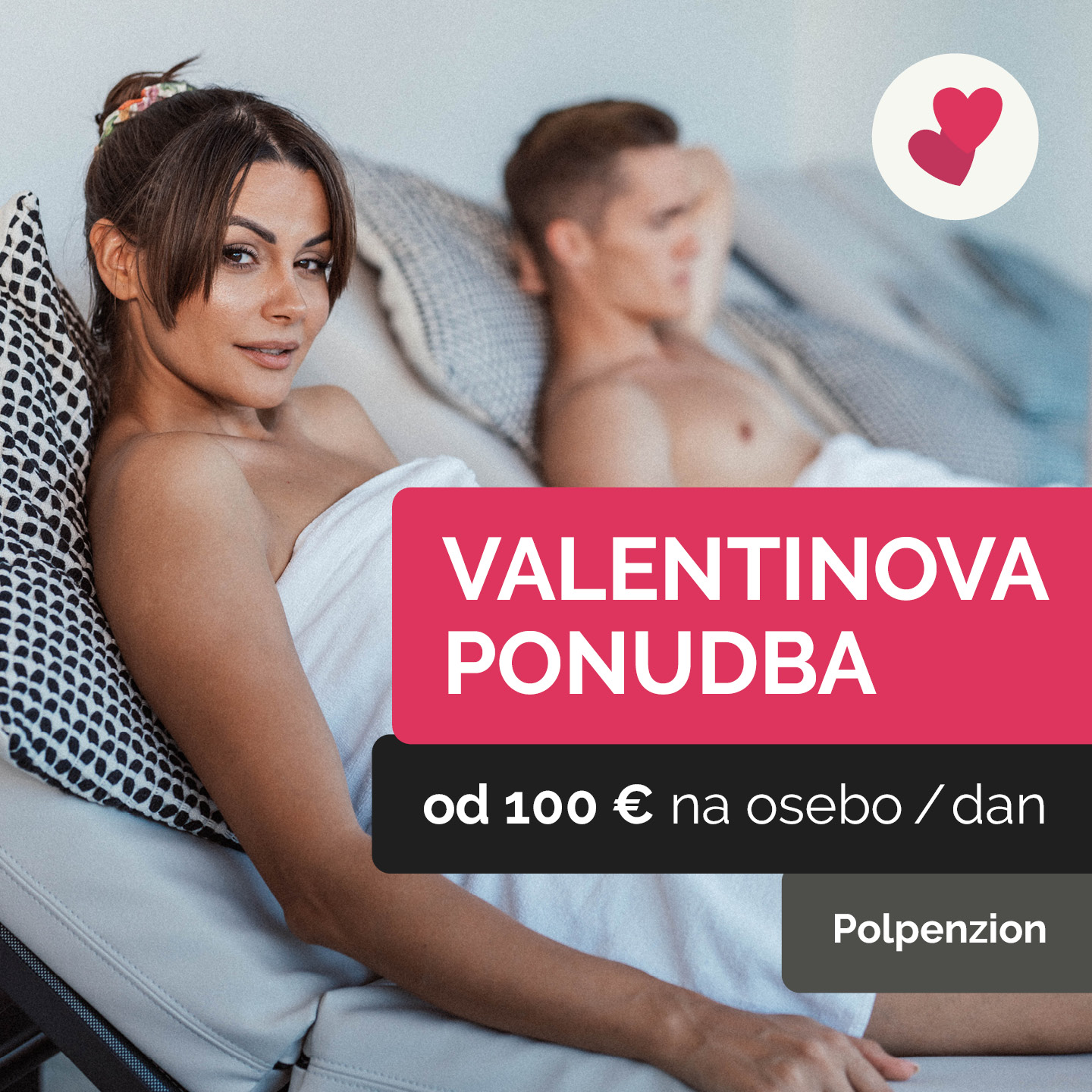 Cena velja ob bivanju dveh oseb v dvoposteljni sobi. Termini: 13. 2. – 15. 2. 2026